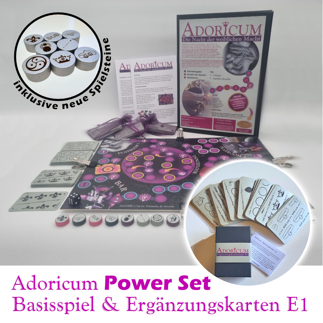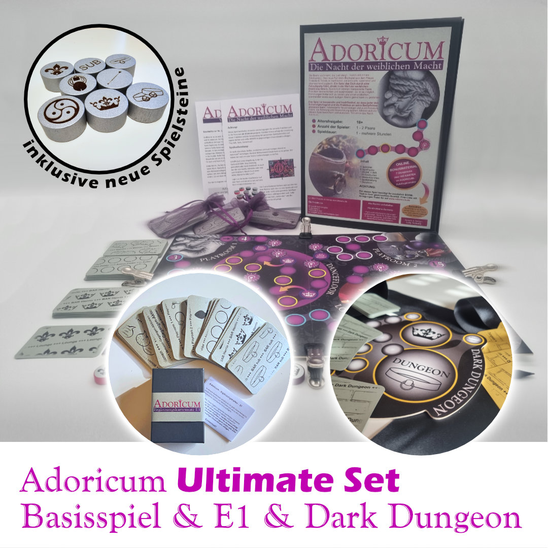 Adoricum ist das Brettspiel, das deine Wohnung in eine pulsierende Fetischparty verwandelt. Entwickelt, um dich und deine Mitspieler in eine aufregende Session zu entführen, bietet es unzählige Anregungen für spielerische Abenteuer. Ergänzt durch eine Dance Competition, wird Adoricum noch dynamischer und unterhaltsamer. Dieses kooperative Spiel lädt dazu ein, zusammen Spaß zu haben, sich zu entdecken und in eine Welt des BDSM einzutauchen, und das im vertrauten zu Hause.